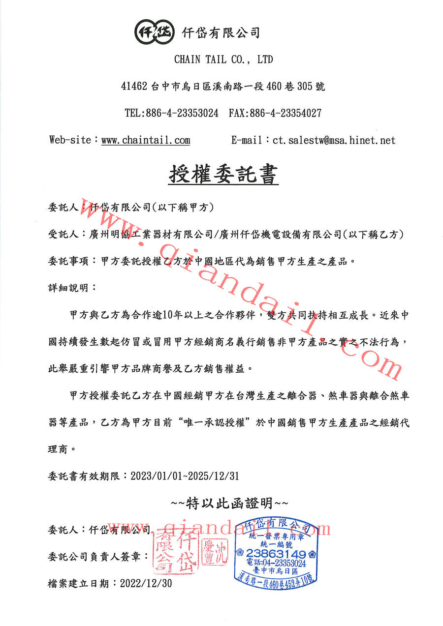 仟岱有限公司授權(quán)委託書2023-2025年